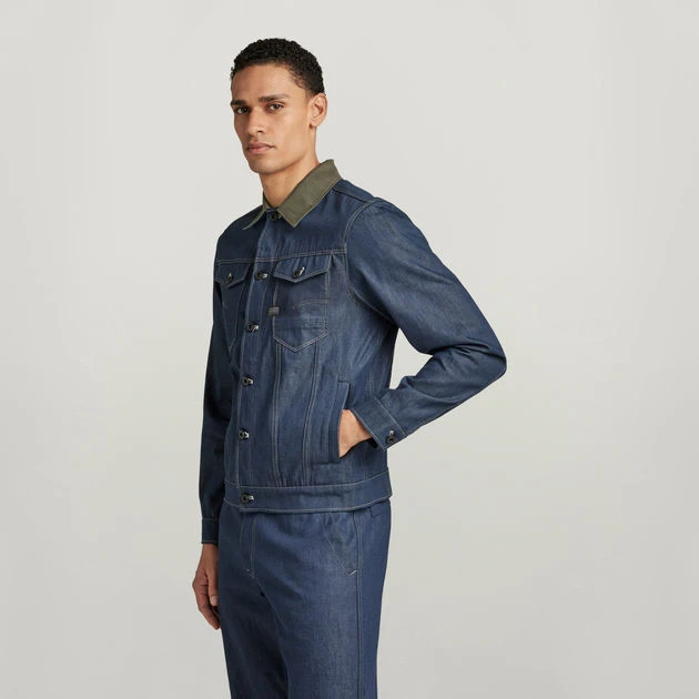The Arc PM 3D jacket is designed with a contrast colored collar. This jacket offers deep chest pockets with a flap closure. Shank buttons close this denim jacket.