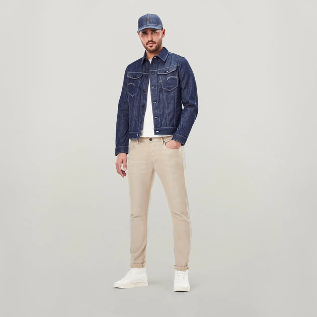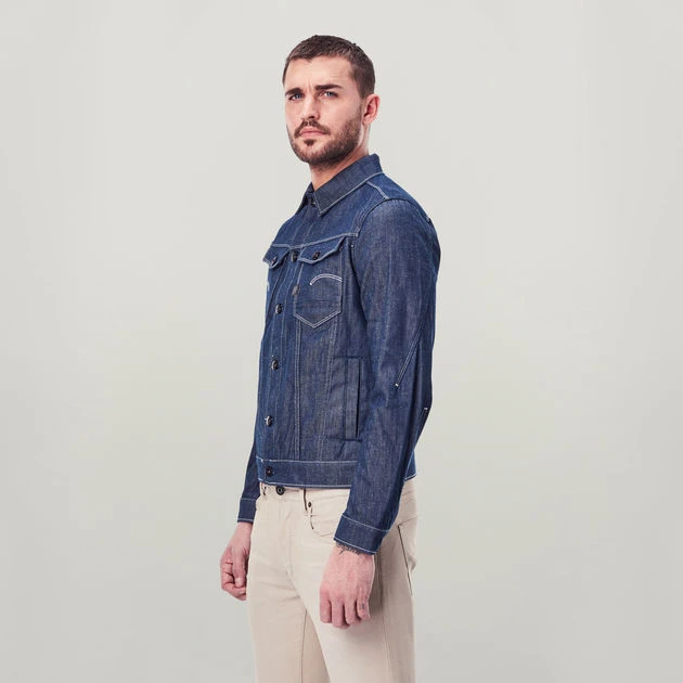 This is a Cradle to Cradle Certified® Gold G-Star RAW product. Designed for circularity, this style is made responsibly and is 100% recyclable. Not a drop of water was wasted during its make and chemistry applied in the process presents zero risk for people and planet. Furthermore, this garment was created using electricity from 100% renewable resources. The Arc 3D slim jacket C follows the same G-Star 3D design principles as the Arc jeans. Where twisted seams create a bowed fit that turns around the sleeve. This means a slim fit with comfort and mobility.