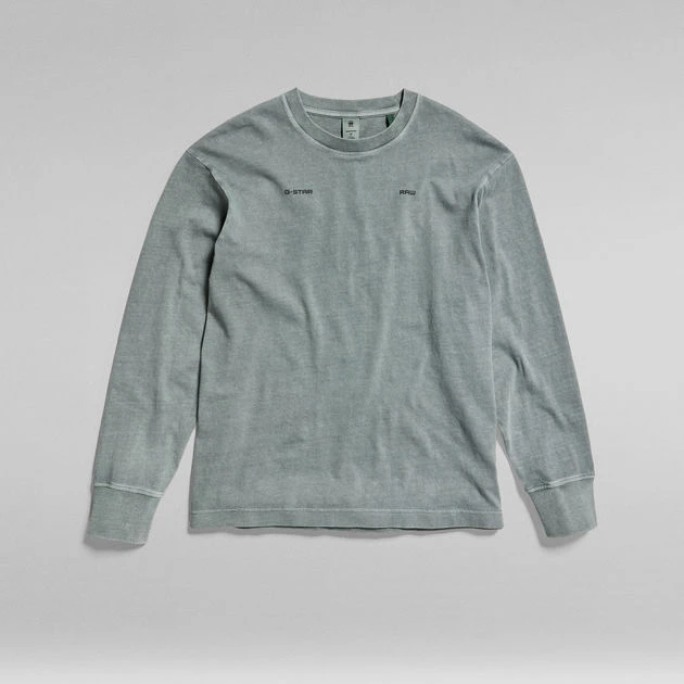 Long sleeved T-shirt Back Typography offers a comfortable wear due to the oversized fit and ribbed neckline. A squared, boxy silhouette is created. The graphic print at the back completes this boxy T-shirt with long sleeves.