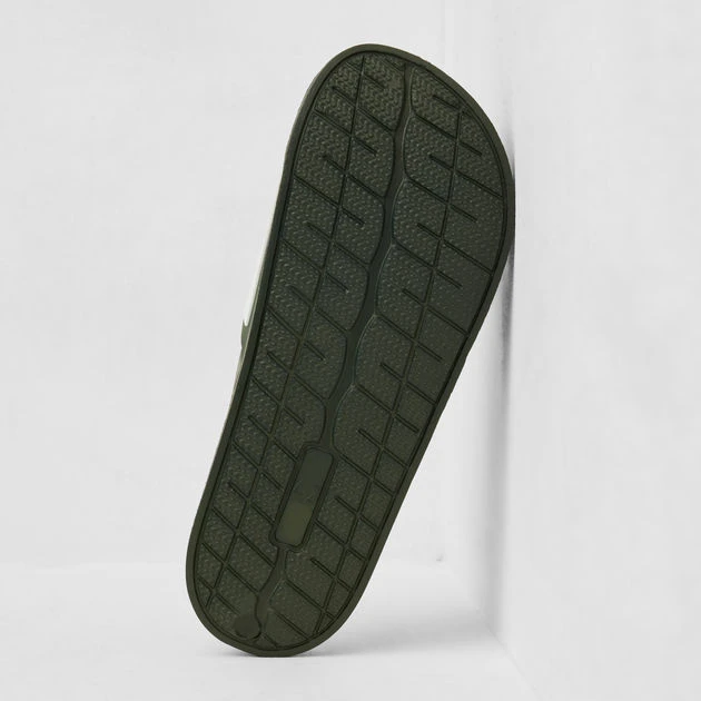 These lightweight Cart slides show a raised RAW design at the strap. The ergonomic footbed allows for a relaxed feel.