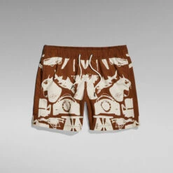 Swim shorts Small Objects feature an allover graphic print. Side seam pockets are combined with a single welt pocket at the back. The waist offers elastic with an incorporated drawcord. Inside, a mesh lining adds support.