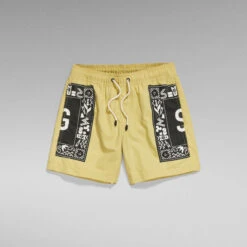 Swim shorts Dirik Solid Big Artwork are designed in an upper leg length. A bandana inspired graphic is set at the front pockets. These swim shorts show an elastic waistband with an incorporated drawcord to enhance a personalize fit. At the back, a slim welt pocket is set. Inside, a mesh lining adds support.