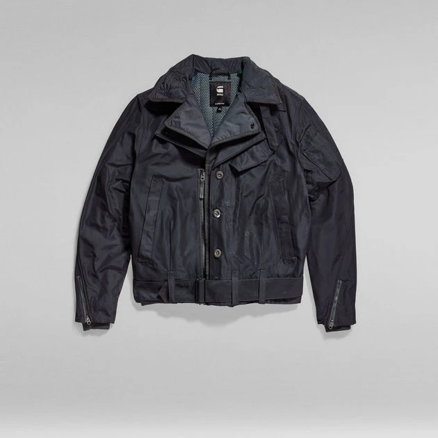 - Inner jacket: lapel collar- option to fully close, top button- strap for raised collar