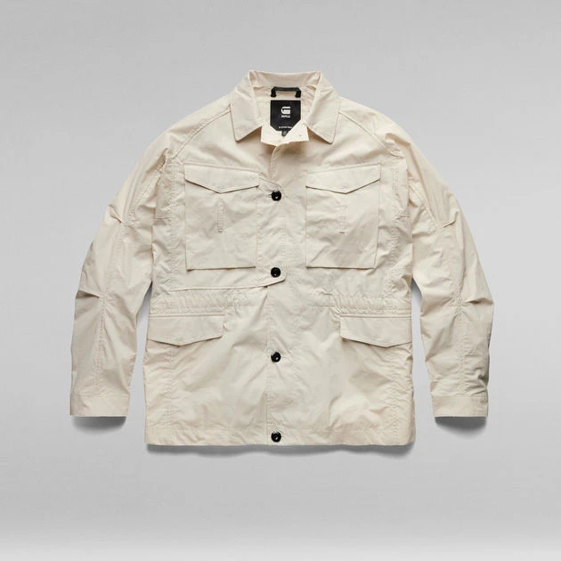 Jacket Field is designed in a roomy fit with a button closed front. Flap pockets are placed at the chest and waist, offering a hidden snap button closure. Underneath one of the chest pockets, an angled pocket is added. The design of this field jacket shows an additional flap pocket at the upper back. Adjustability is created at the cuffs (additional button) and waist (drawcord at the inside).