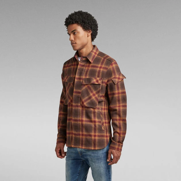 Overshirt Mysterious is cut in a straight fit. Aside the visible flap pockets at the chest and bicep, this shirt also offers hidden pockets. These are placed on the inside and are accessible via a side entry. This shirt has a concealed button closure and a slightly rounded hem. A loop placed at the upper back adds detail. The flap pockets at the chest offer a hidden snap closure and are highlighted by a ‘stitch through’ embroidery. Vertically placed waist pockets complete it.