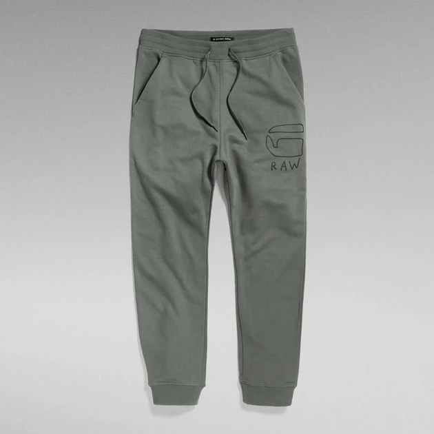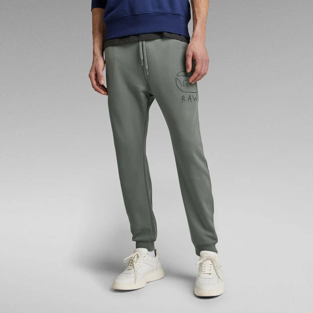 Sweatpants Outline offer a slim fit with a shaped design line at the ankle. A ribbed cuff is set underneath. These joggers offer an elasticated waist finished with an additional drawstring. Inset pockets are combined with a single back pocket. A graphic print is added to the upper leg.