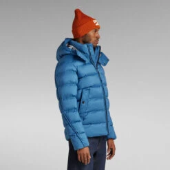 Denim jacket P3 is lightly padded with a soft filling. Volume pleats are added to the partly elasticated back. This jacket shows a single chest pocket with a zip closure. Cargo pockets at the waist offer a jeans button closure. For ease, a hanger loop and inner pocket are added to this denim P3 jacket.
