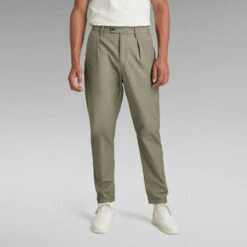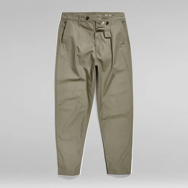 These Chinos offer a waistband with beltloops combined with horizontally placed loops. Pleats at the front enhance the relaxed fit of these pants. This style shows inset pockets that are cut in shape. The ‘strike through’ embroidery stitches indicate the entrance. The coin pocket is repositioned towards the inside of the waistband. Squared pockets with a button closure are added to the back of these relaxed chino pants. Choose for a turn-up leg to complete the look.