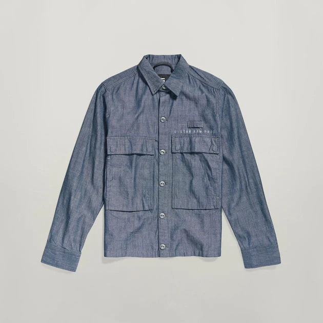 This shirt is created out of a finely woven chambray fabric, offering a characteristic color blend of blue and white.
