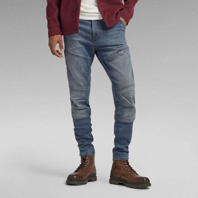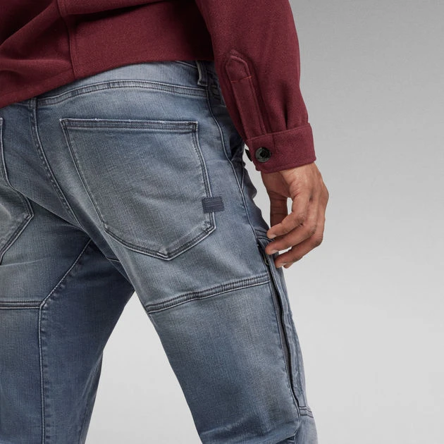 These Rackam 3D skinny jeans are designed with shaped seams at the thigh and knee. Vertical placed zip pockets are caught behind a welt at the upper leg and thigh. These zip placements are inspired by a flight suit. A 3D fit combined with a stretch denim create a comfortable wear. This jeans offers a zipper closure.