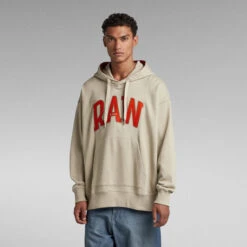 Hooded sweater RAW University features a felt application at the chest. An embroidered edge fixates it. The roomy hood adds to the comfy oversized fit. Ribbed finished edges complete this oversized hoodie.