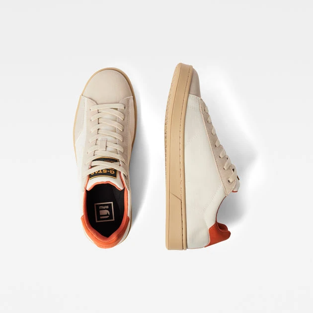 These Recruit sneakers are designed in a low cut and offer flat laces. Additional stitch lines create detail. The tongue shows a G-Star Originals label and a G-Star RAW logo is placed at the side. The contrast colored back and lining add character.