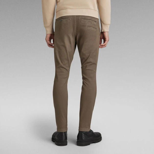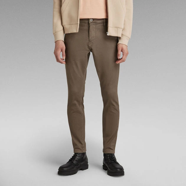 This skinny chino offers inset pockets with a design stich. A coin pocket is caught in the seam of the waistband. At the back, a phone pocket is placed just below one of the slim welt pockets. Shaping seams at the back of the waist create a close fitted silhouette.