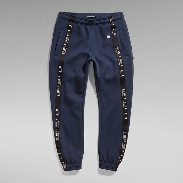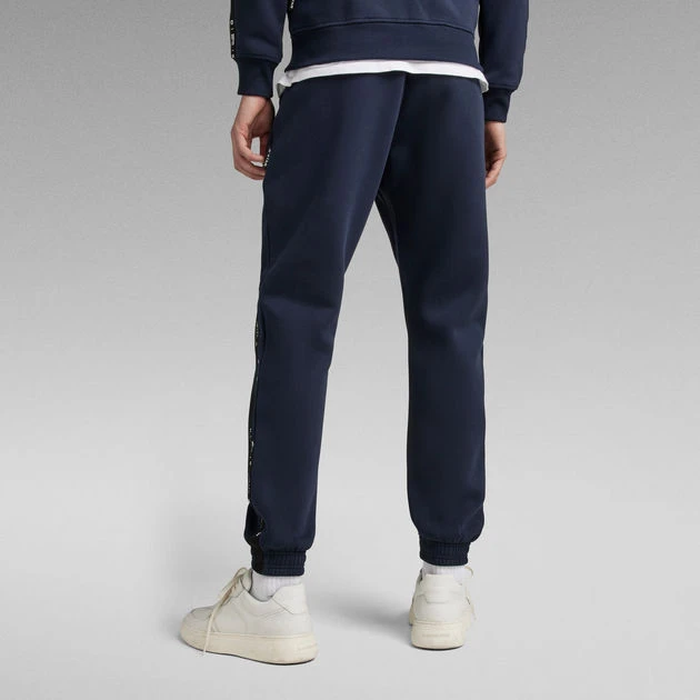 Sweat pants Sport A Tape are designed in a loose fit and offer elastic finished cuffs and waist. A G-Star RAW woven tape starts at the front and runs towards the sides of these joggers. Pockets with a broad welt are placed at the waist and back, whereas the one at the back offers a hidden snap button closure.
