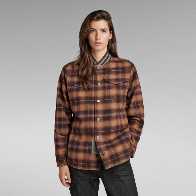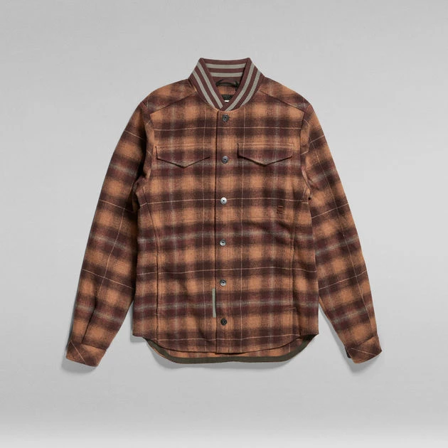 Overshirt Bomber Collar combines a regular shirt with a ribbed neckline we know from bomber jackets. Cut in a straight fit this design offers flap pockets at the chest with a hidden button closure and side seam pockets. At the back, two slanted pieces create shoulder panels with an enhanced fit. The back side is slightly extended and offers a curved hem.