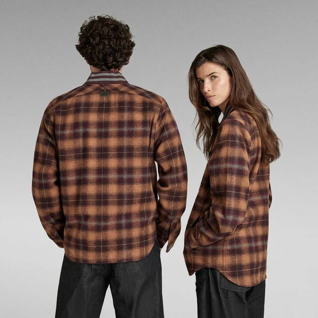 Woven check pattern, inspired by a vintage woolen overshirt. This woven twill is created out of recycled materials.
