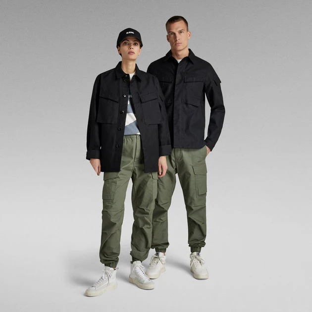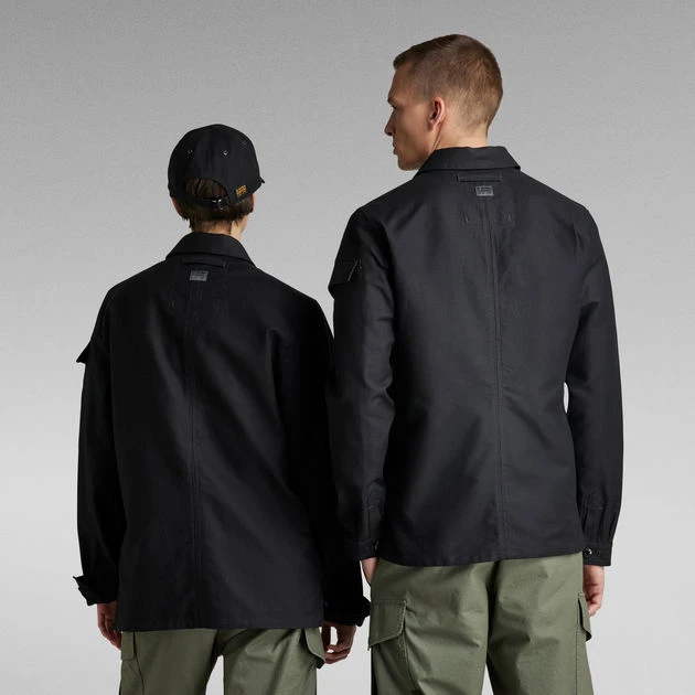 Overshirt Mysterious is cut in a straight fit. Aside the visible flap pockets at the chest and bicep, this shirt also offers hidden pockets. These are placed on the inside and are accessible via a side entry. This shirt has a concealed button closure and a slightly rounded hem. A loop placed at the upper back adds detail. The flap pockets at the chest offer a hidden snap closure and are highlighted by a ‘stitch through’ embroidery. Vertically placed waist pockets complete it.
